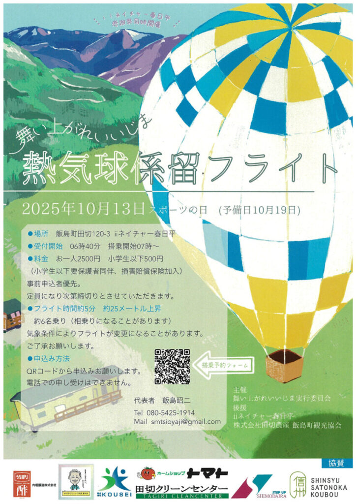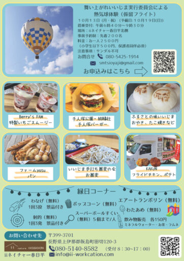 2025年10月13日(月曜日・祝日)にiiネイチャー春日平にて、「熱気球係留フライト」が開催されます。
