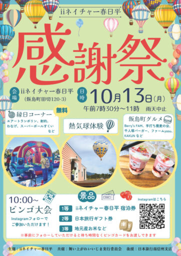また、同日に「iiネイチャー春日平感謝祭」などさまざまな催しを予定しています。